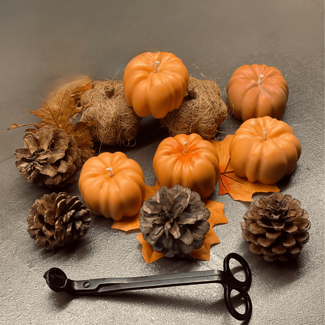 Τρία χειροποίητα κεριά σε σχήμα κολοκύθας, δημιουργούν ένα συνδυασμό αρωμάτων & χρωμάτων.
